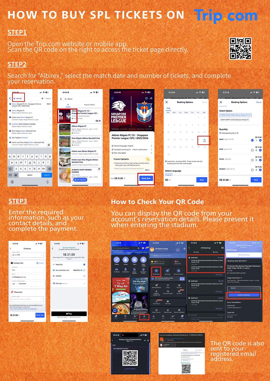 - Once your purchase is complete, an electronic ticket (QR code) will be issued to your registered email address and Trip.com account.